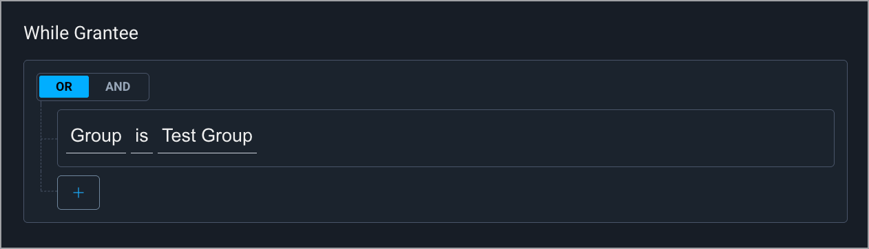 <table><thead><tr><th width="141">Condition</th><th>Description</th></tr></thead><tbody><tr><td><strong>AND</strong></td><td>(Default) Allows the user to request access if they meet <strong>all</strong> the attributes of the user group</td></tr><tr><td><strong>OR</strong></td><td>Allows the user to request access if they meet <strong>any</strong> of the attributes of the user group</td></tr></tbody></table>