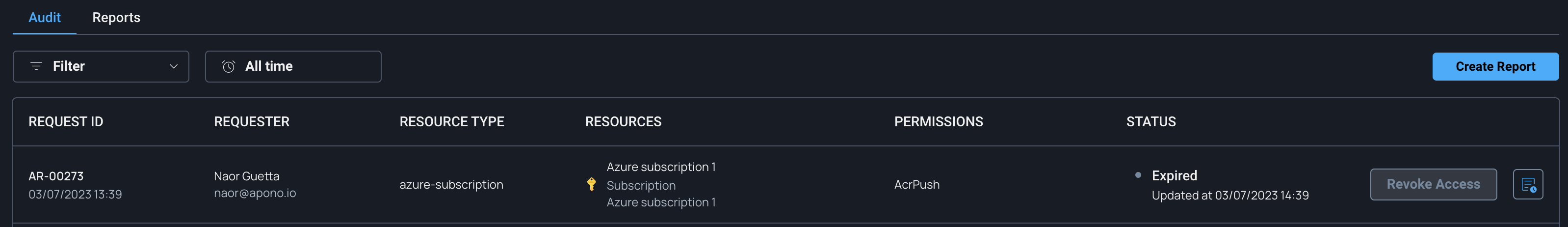 Apono serves as your central control tower for shut-down - in case of emergency or incident, you can revoke all active access directly from Apono: