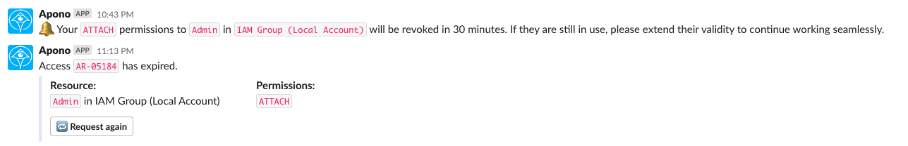 When the access lifetime ends, Apono revokes the access for you automatically