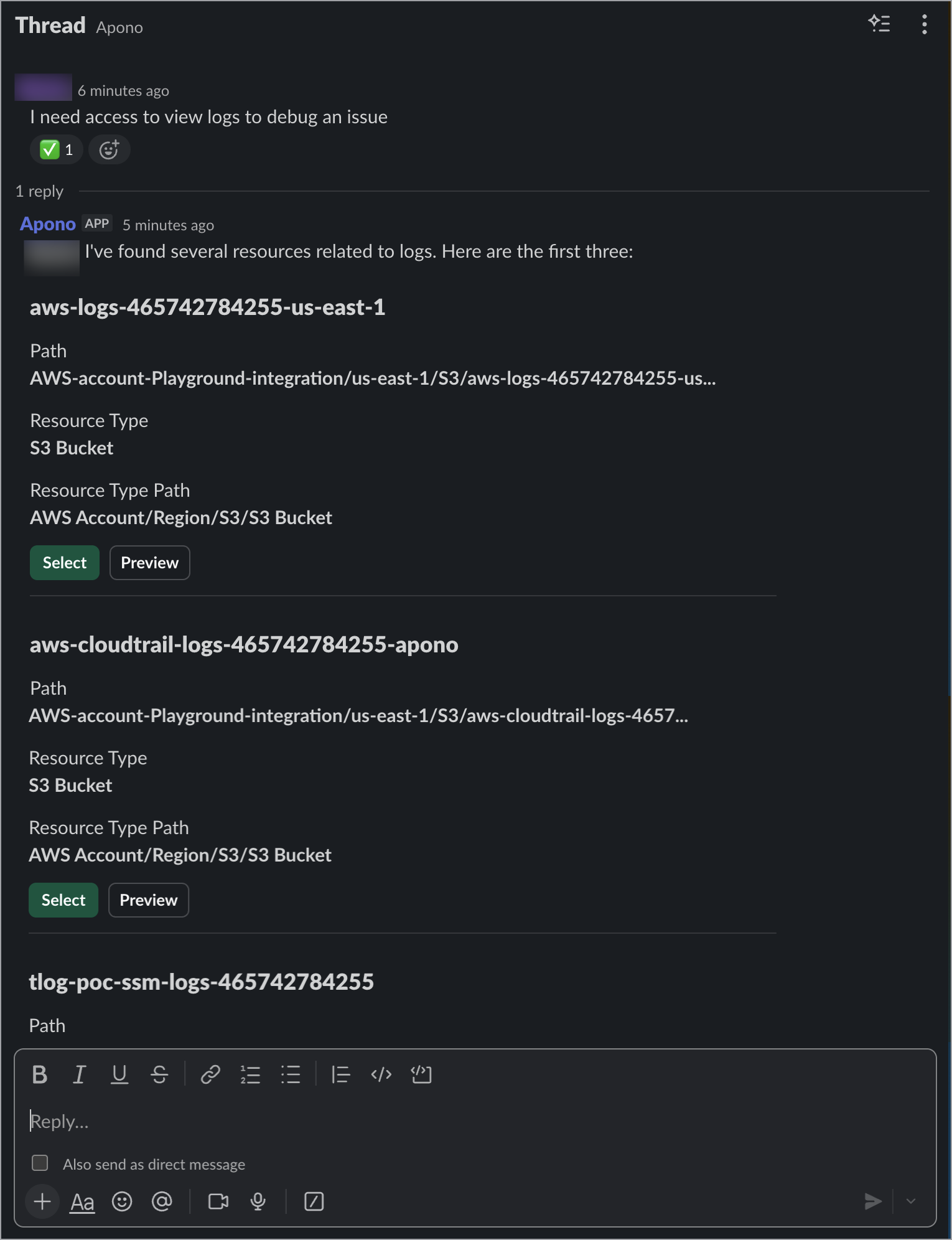 In either case, you can click [**Preview**](#preview) and complete the access request on the **Resources Request** tab outside of the **Apono Assist** panel.