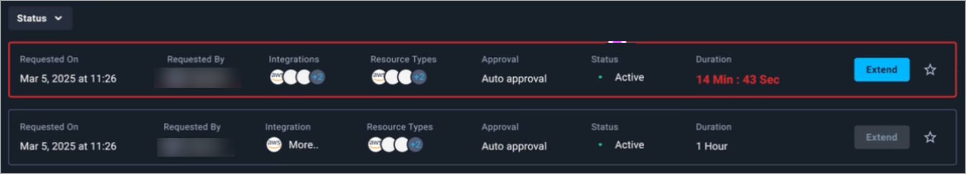 If the **Extend** option is enabled for an access request, it becomes active when your access is nearing expiration. After clicking the **Extend** button, the duration of your existing access is increased, based on settings defined by your administrator.