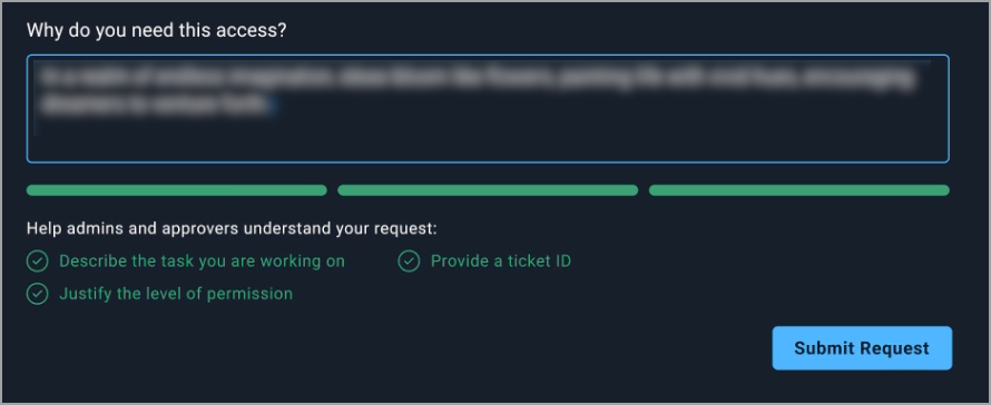 A clear explanation helps approvers understand your request, speeds up approvals, and ensures the access can be audited later.