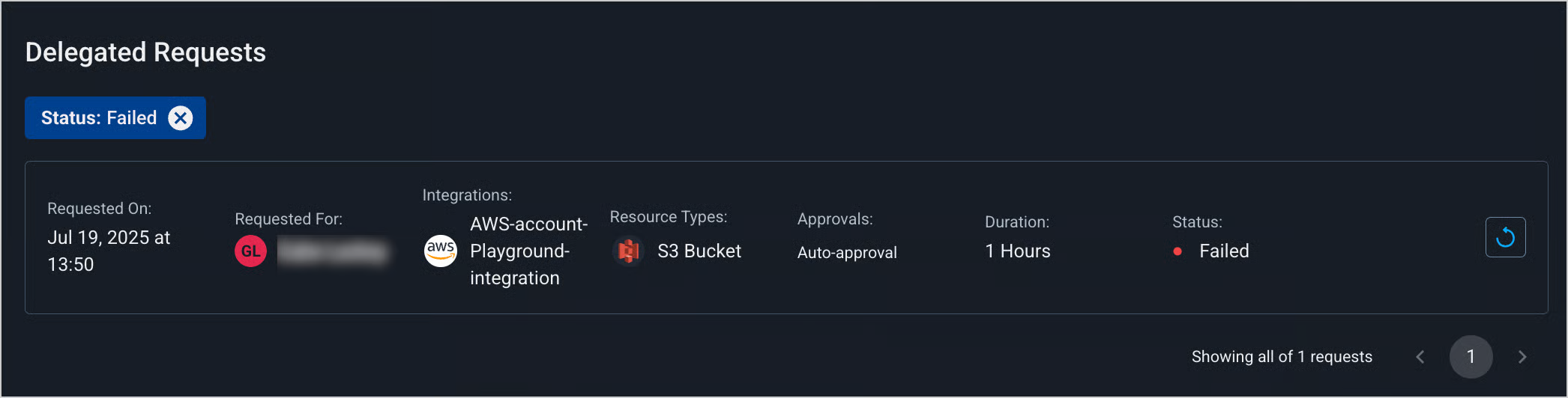 4. Click **Submit**. The request will appear with its status on the [**Delegated Requests**](https://portal.apono.io/delegated-requests) page.