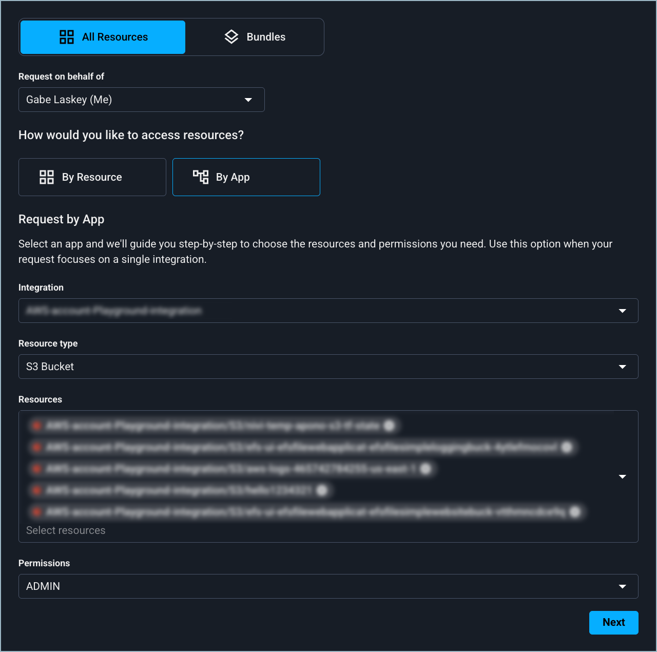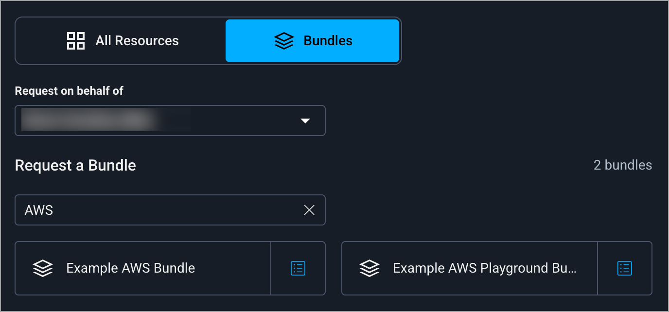 You can request access to specific resources, an app, or a bundle.