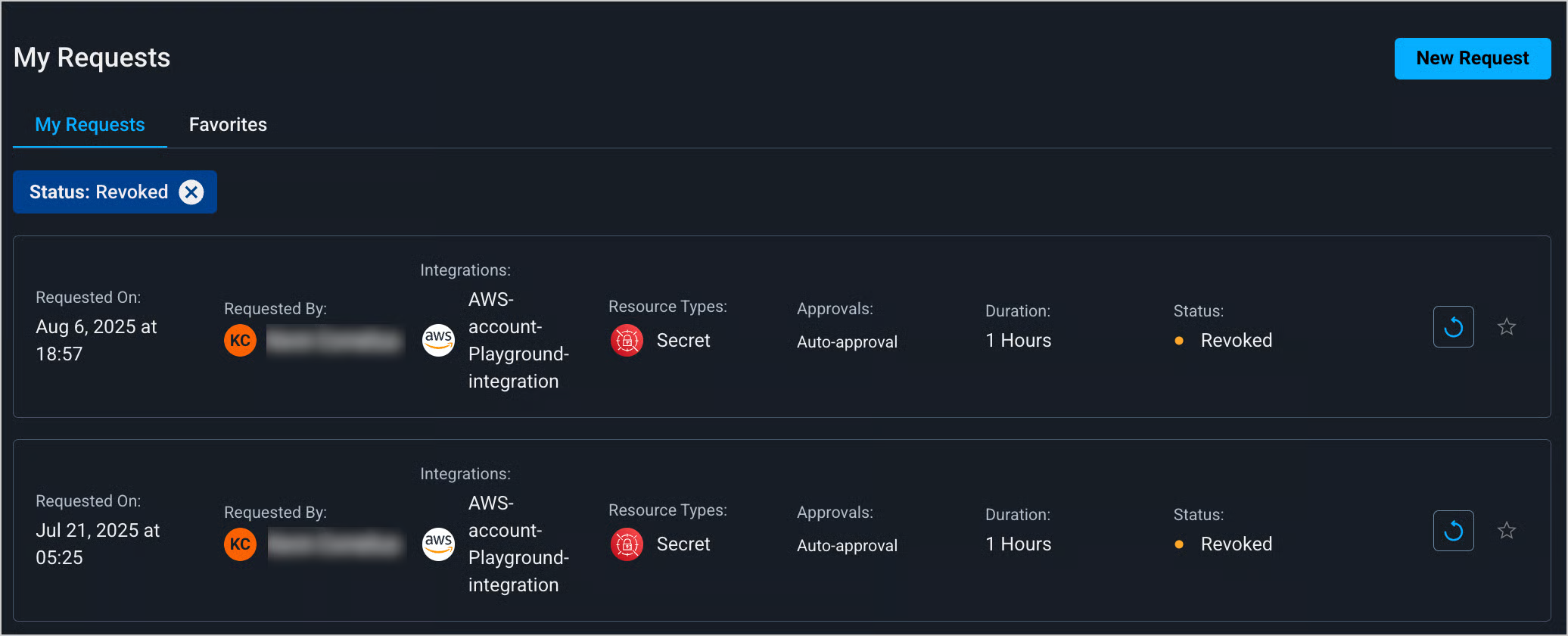 After a request has expired or been revoked, you can mark it as a [favorite](https://docs.apono.io/docs/favorites#add-a-favorite).