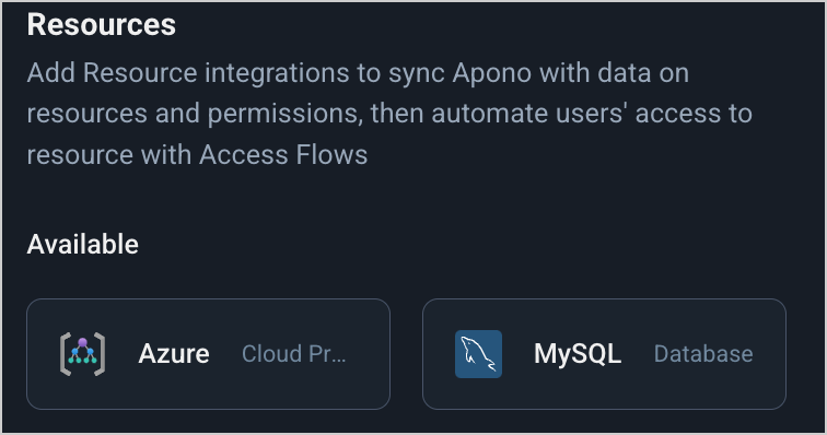 Apono automatically discovers and syncs all the resources in the environment. After syncing, you can manage access flows to these resources.