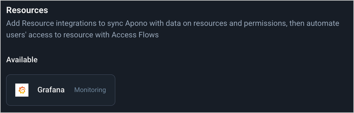 Now that you have completed this integration, you can [create access flows](https://docs.apono.io/docs/access-flows/access-flows) that grant permission to your Grafana resources.