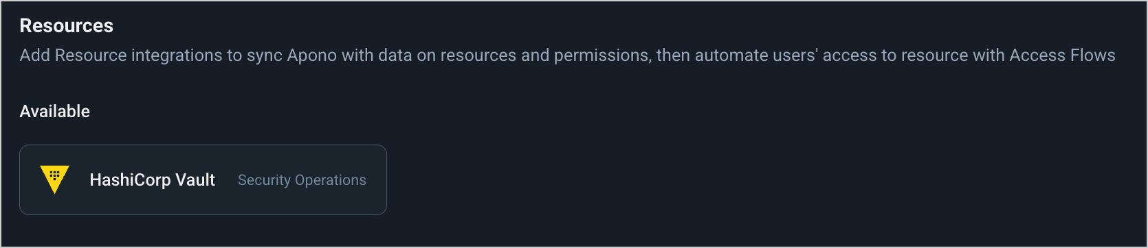 Now that you have completed this integration, you can [create access flows](https://docs.apono.io/docs/access-flows/access-flows) that grant permission to your HashiCorp Vault secrets and keys.