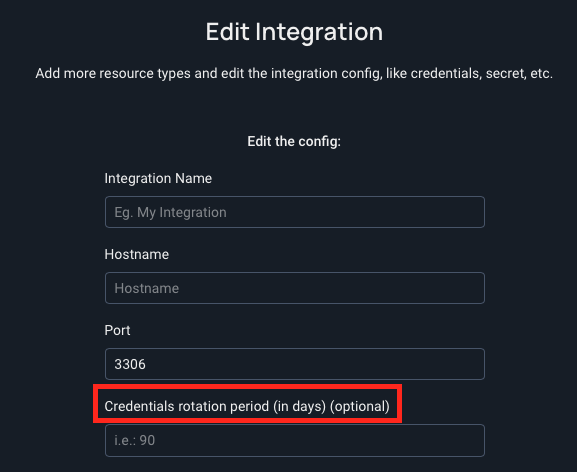 Create a new integration or visit any existing integration you'd like to set a credentials rotation policy for.