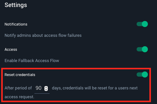 Turn the toggle on and insert the period after which the reset will take place. The default is 90 days, but can be changed into any amount of days.