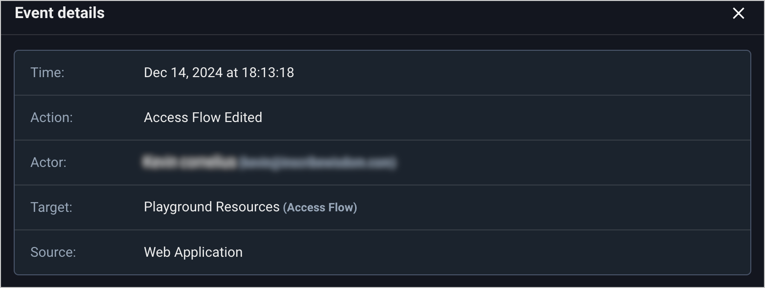 <figure><img src="https://1094436629-files.gitbook.io/~/files/v0/b/gitbook-x-prod.appspot.com/o/spaces%2Fv6MBfUGvblSdAz31yJXm%2Fuploads%2Fgit-blob-b72639e06d76f8c7718d270d7ab380532b76699f%2Faudit-log-event-details.png?alt=media" alt="" width="563"><figcaption><p>Event details sections</p></figcaption></figure>