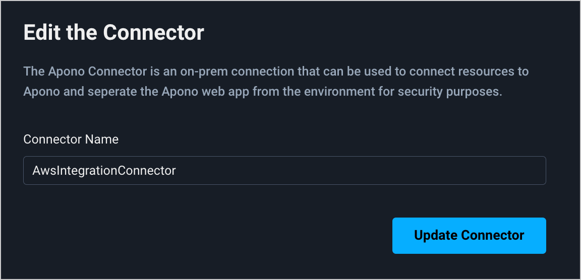 If you change the name of a connector in the Apono UI, you must also change the `connector_id` param in the installed connector.