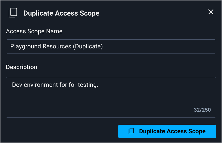 5. Click **Duplicate Access Scope**. The access scope is duplicated.
