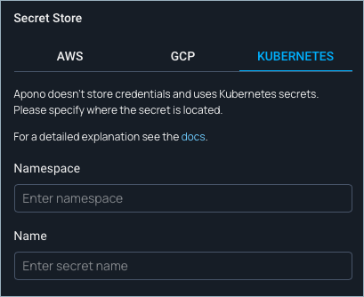 1. Under **Secret Store**, click on the **KUBERNETES** tab.