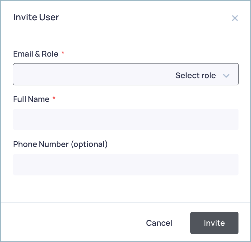 <figure><img src="https://1094436629-files.gitbook.io/~/files/v0/b/gitbook-x-prod.appspot.com/o/spaces%2Fv6MBfUGvblSdAz31yJXm%2Fuploads%2Fgit-blob-d225cd385738bbc706b297f3227f70c763fd15da%2F2024-09-27_17-46-55.png?alt=media" alt="" width="375"><figcaption><p><em>Invite User menu</em></p></figcaption></figure>