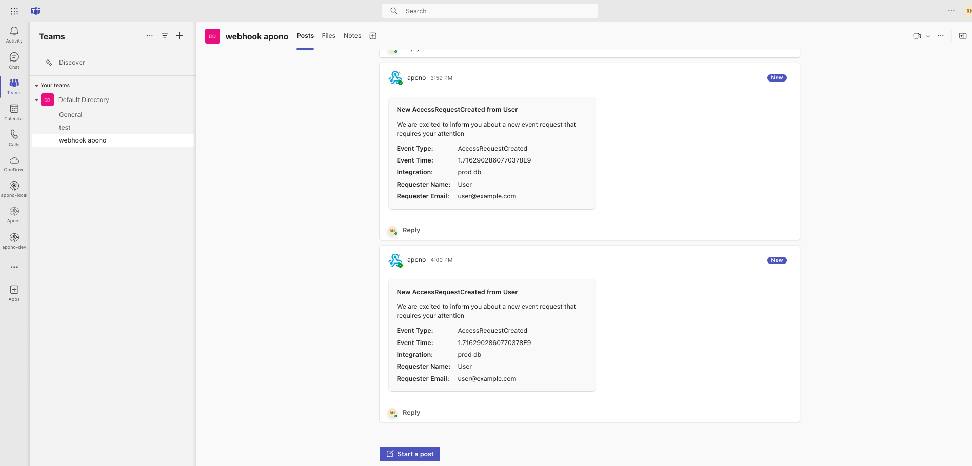 Send Apono access requests data to Teams channels triggered by Apono requests events